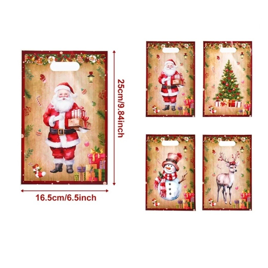 10 ks Dárkové tašky s vánočními motivy 25 x 16,5 cm Plastové tašky s uchy na drobné vánoční dárky a cukrovinky Odolné a lehké balení
