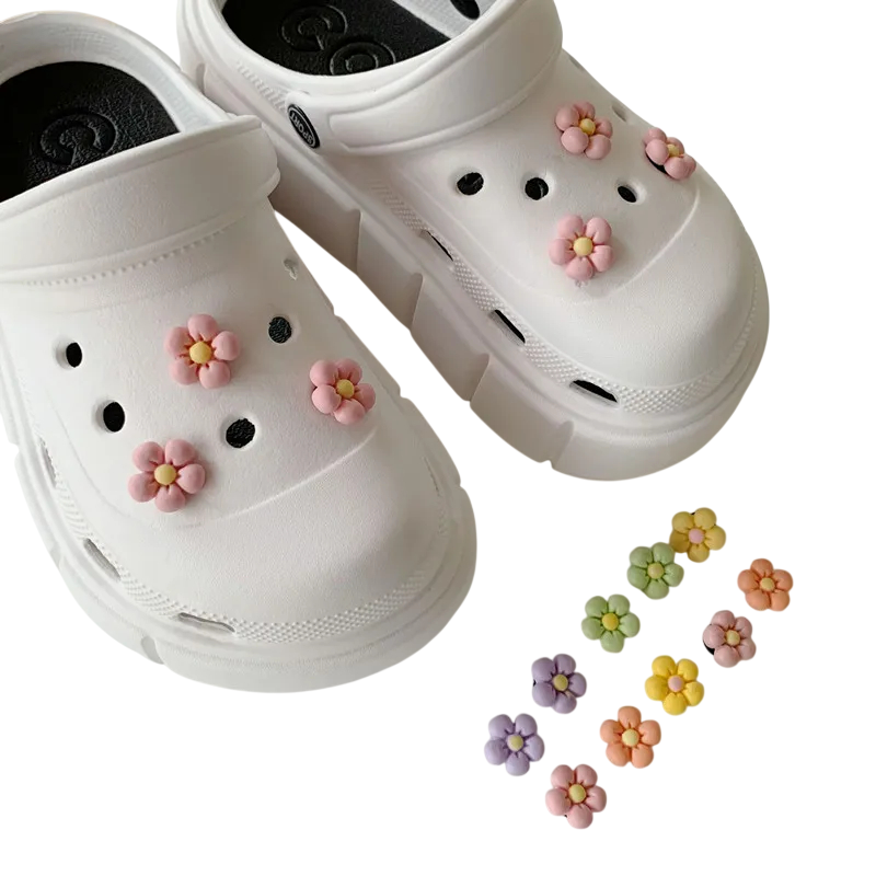 Dekorace na crocsy ve tvaru malých kytiček jsou praktickým doplňkem, který umožňuje snadno změnit vzhled obuvi. Díky svému jednoduchému provedení se hodí pro každodenní nošení a zároveň přidávají botám jemný barevný detail. Tento typ ozdoby je vhodný pro děti i dospělé, kteří chtějí dodat své obuvi hravější vzhled.