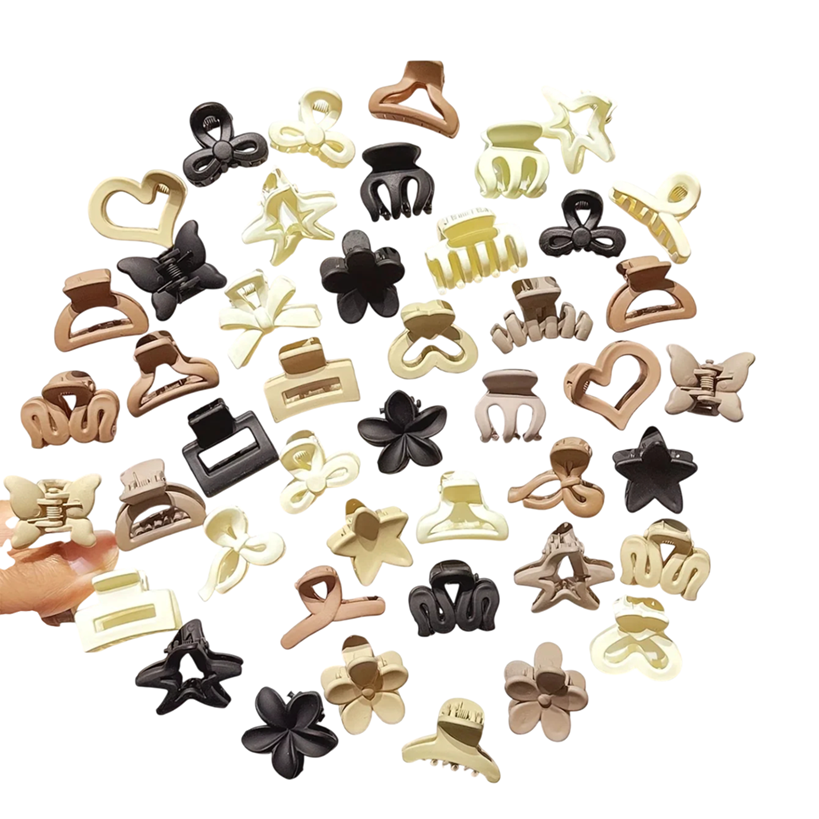 10 ks Mini skřipce do vlasů 2,5 cm Mix barev béžová hnědá černá Různé tvary Malé vlasové klipy pro účesy Dámské doplňky