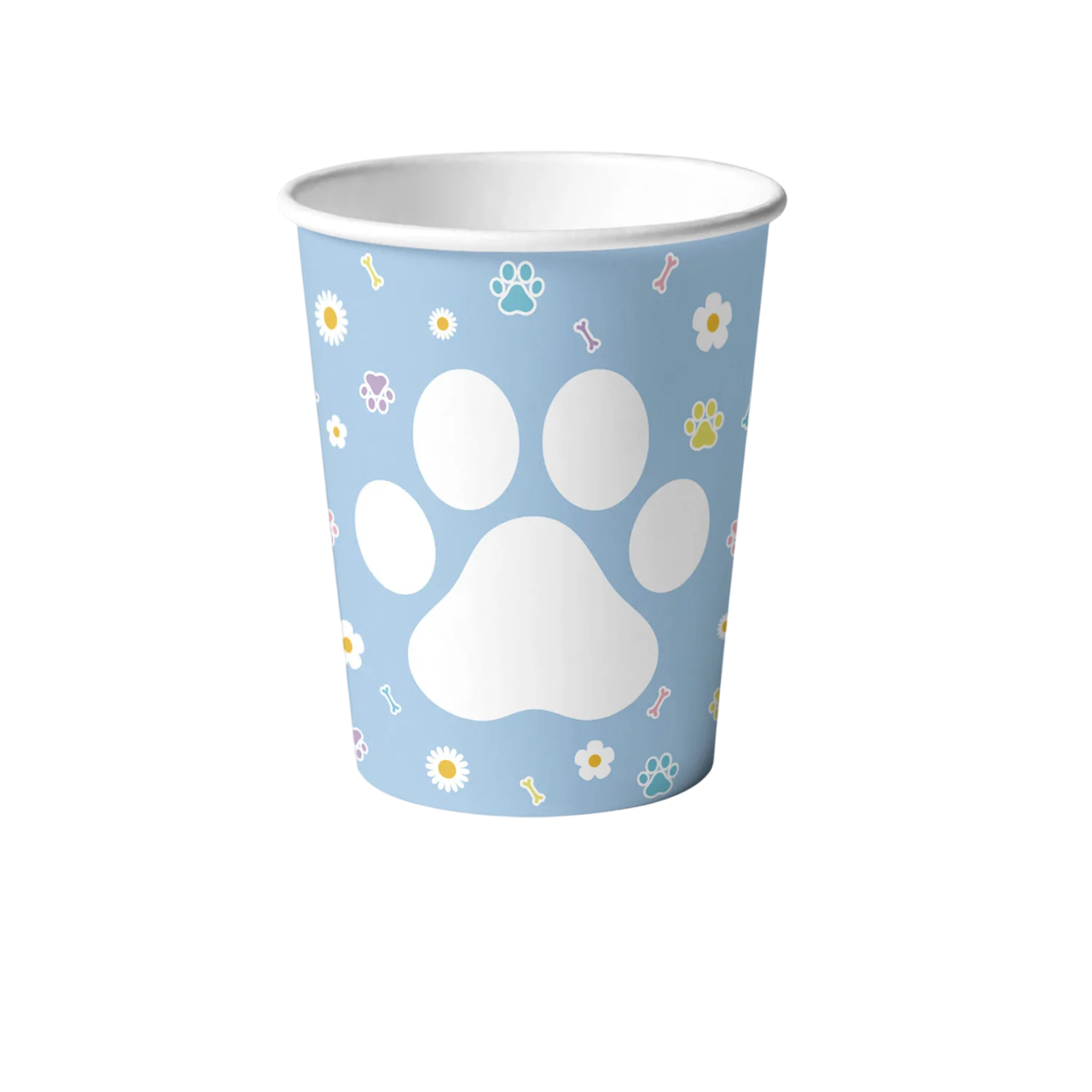 Papírové kelímky s motivem bílé kočičí tlapky a květin skvěle doplní narozeninovou výzdobu a vytvoří jednotný styl party dekorací.