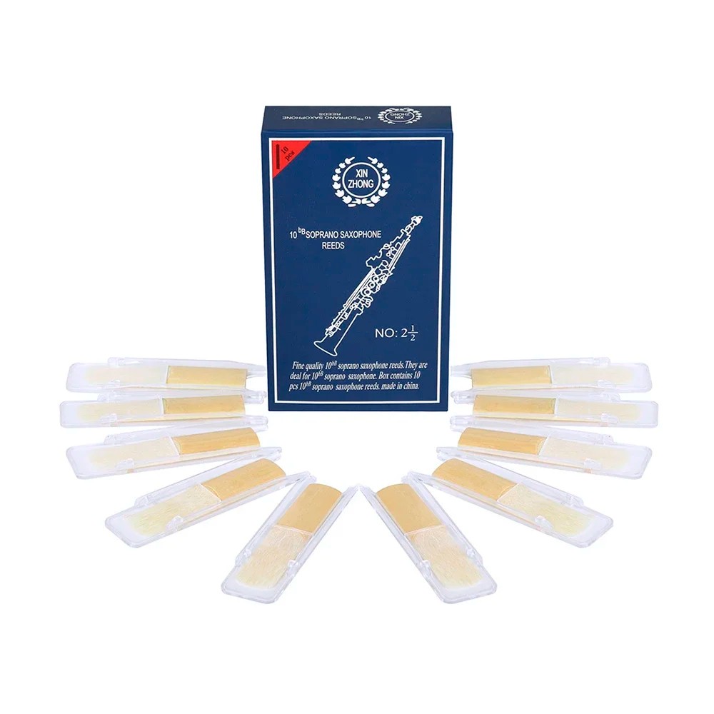 10 ks plátků pro soprán saxofon 8 x 1,6 x 0,37 cm Velikost 2,5 Rákos střední tvrdosti Příslušenství pro hudební nástroje vhodné pro tón Bb