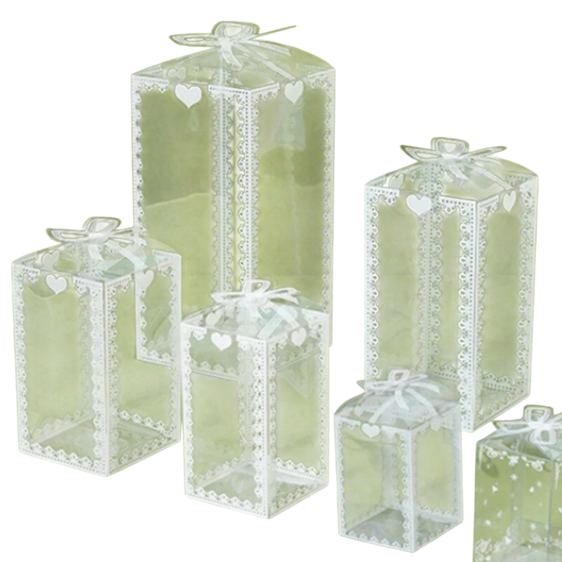 Tyto PVC dárkové krabičky v sobě spojují eleganci, praktičnost a vysokou kvalitu zpracování. Průhledný materiál umožňuje vyniknout obsahu a zároveň působí luxusně, zatímco pevná konstrukce zaručuje stabilitu a dlouhou životnost. Romantický vzor srdíček a ozdobná mašle dělají z těchto krabiček krásný doplněk pro každou slavnostní příležitost.