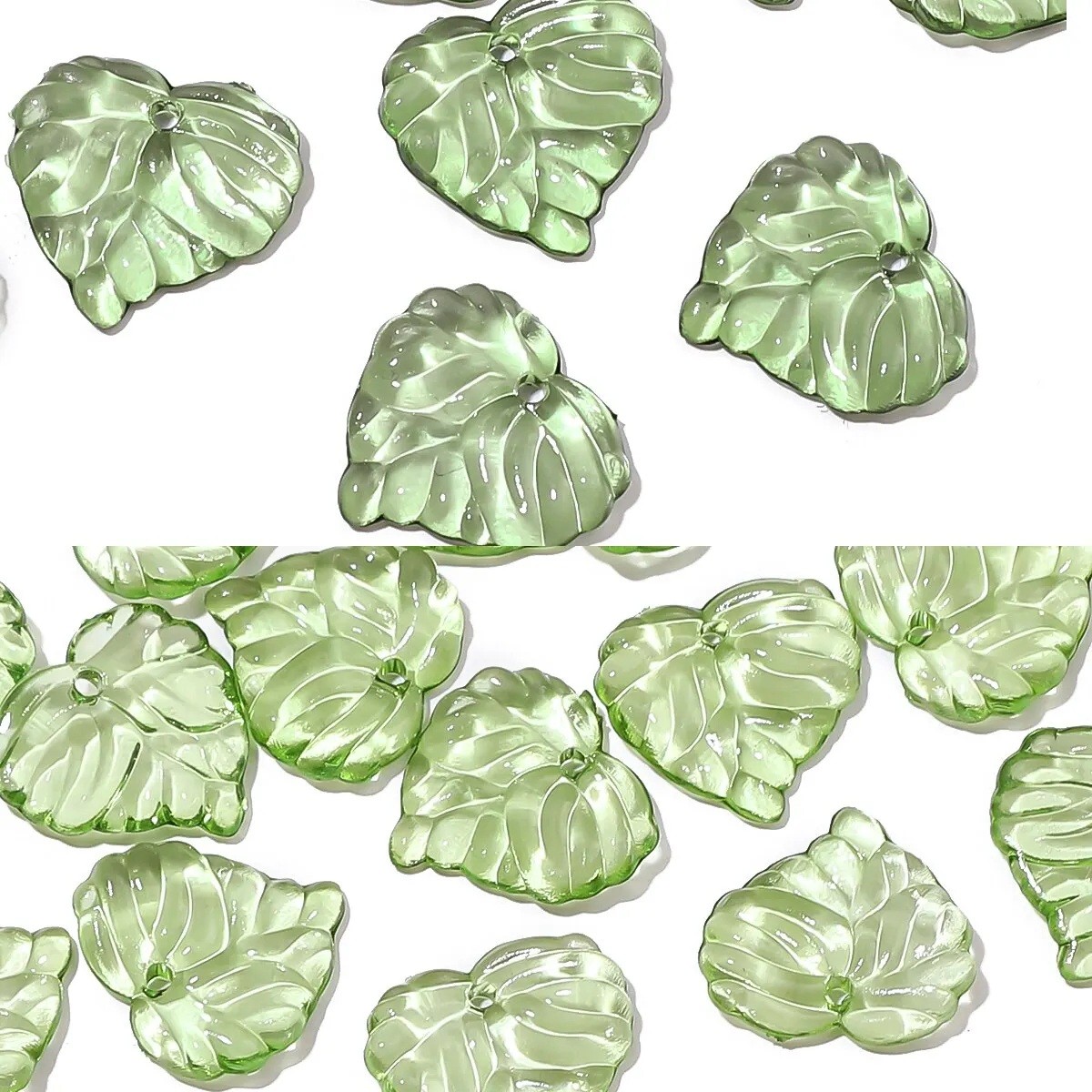 • Obsah balení: 100 ks akrylových korálků ve tvaru zelených lístků