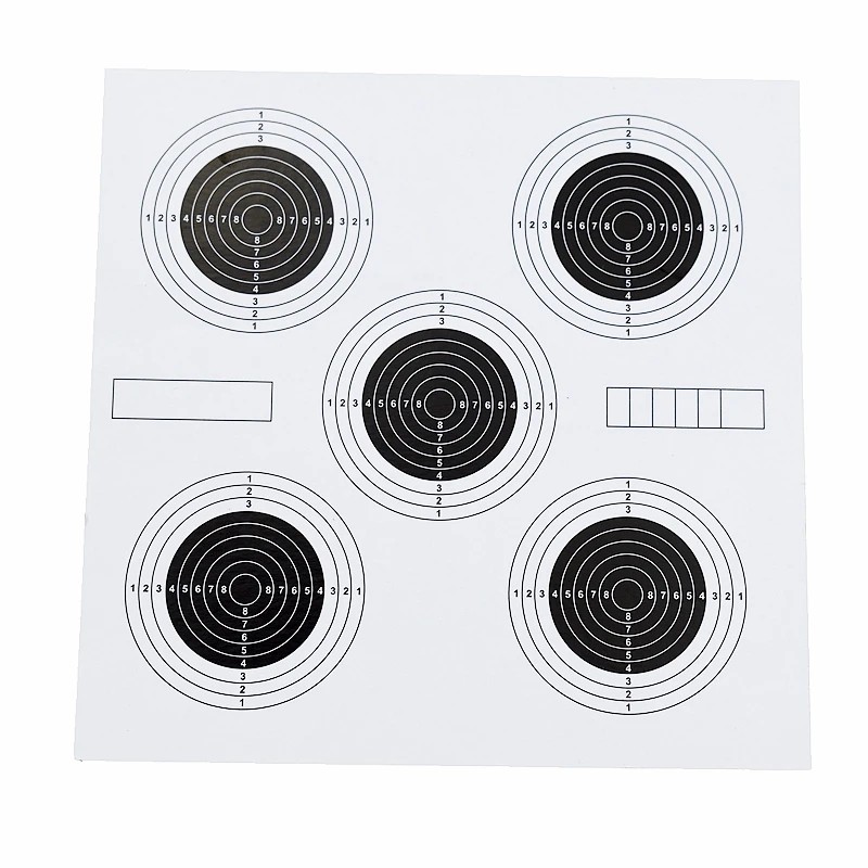 Papírové střelecké terče pět v jednom jsou praktickým řešením pro všechny, kteří chtějí efektivně trénovat přesnost střelby. Každý terč obsahuje jeden centrální cíl a čtyři rohové terče, což umožňuje více zásahů bez nutnosti časté výměny papíru. Díky kontrastnímu tmavému středu a jasně vyznačeným soustředným kružnicím jsou zásahy snadno čitelné i na větší vzdálenost. Terče jsou vhodné pro střelbu ze vzduchových, sportovních i tréninkových zbraní a také pro lukostřelbu. Kvalitní papír zajišťuje čisté průstřely a přehledný záznam výsledků.