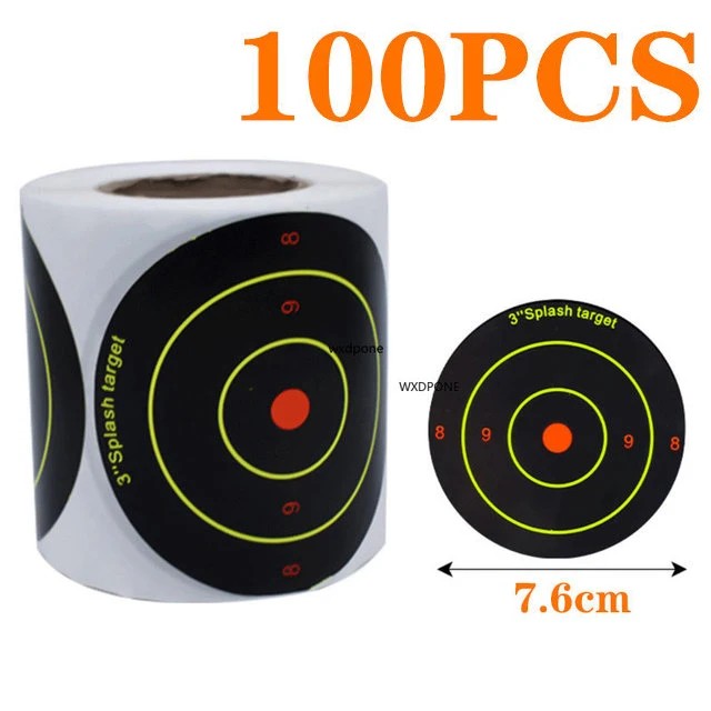 100 ks Samolepicí papírové kulaté terče na střelbu 7,6 cm Reaktivní rozstřikové cíle na roli Černo-žlutý efekt po zásahu