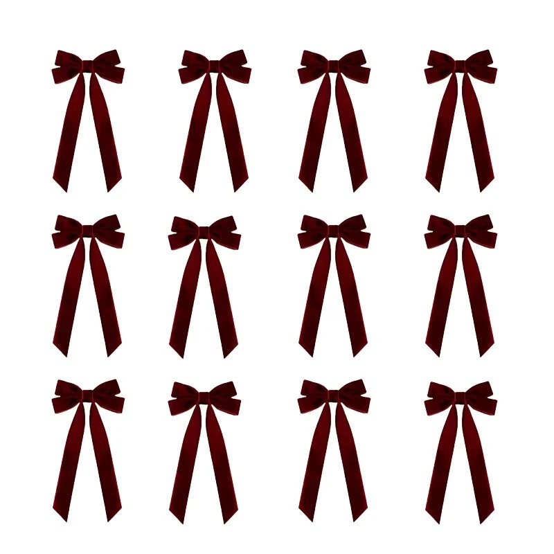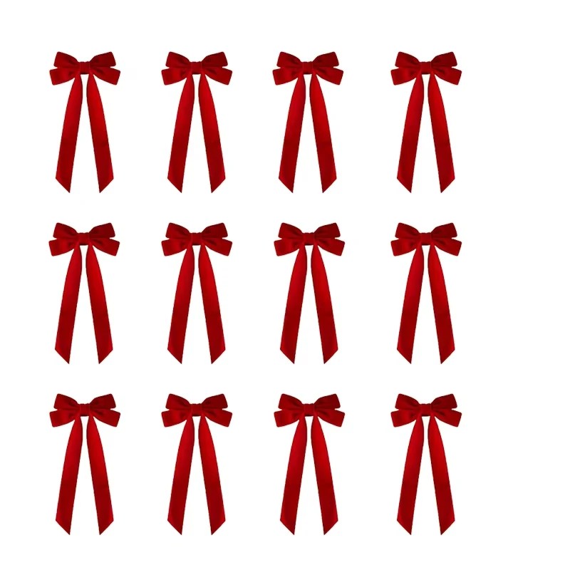 12 ks Vánoční mašličky 21 x 11 cm Textilní ozdoby na stromek a dekorace Sváteční látkové mašle pro výzdobu interiéru Vánoční dekorační doplňky
