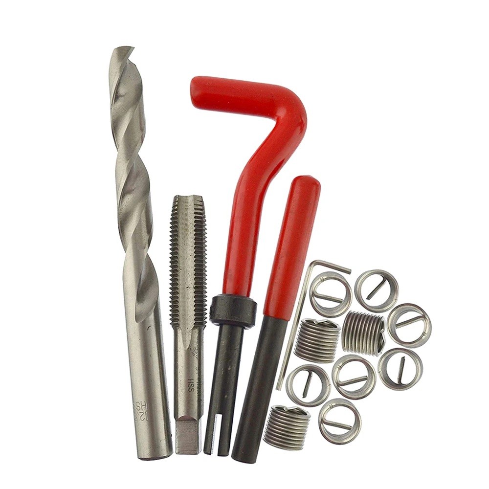 15 ks sada vložek pro opravu metrických závitů M12x1,25 s vrtákem a závitníkem kovová stříbrná pro opravy závitů
