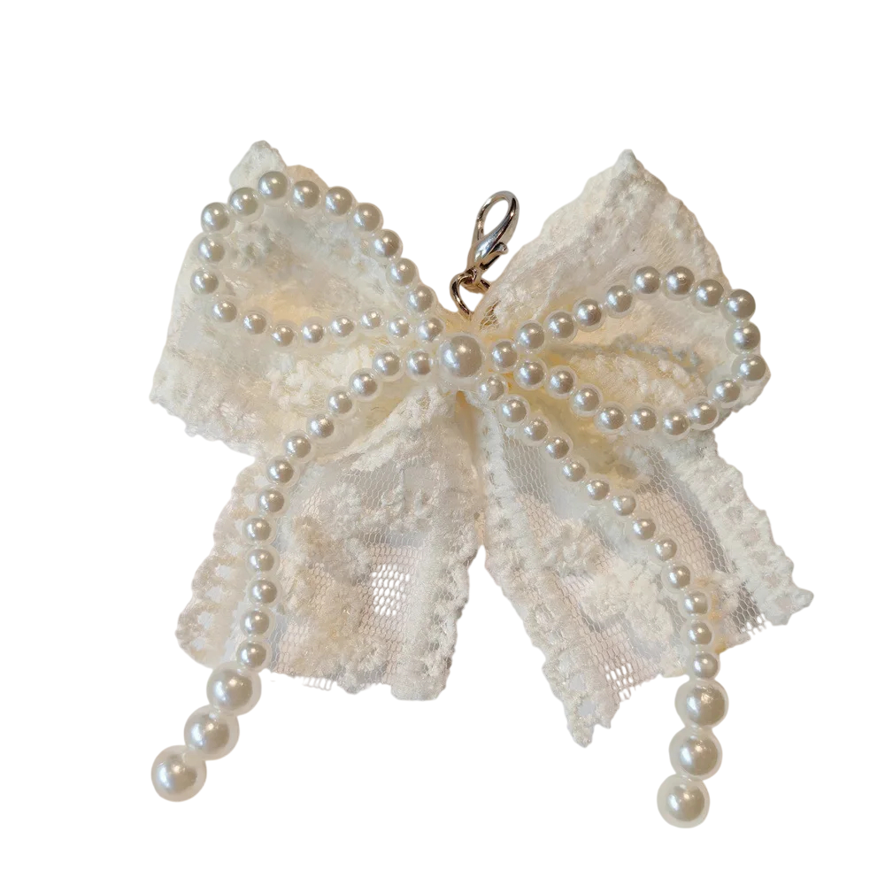 Každá dekorace má tvar klasické mašle a je vyrobena z krajkového materiálu, který vytváří lehký a vzdušný efekt. Detailní struktura krajky je dobře viditelná a dodává doplňkům specifický vzhled. Bílé provedení umožňuje snadnou kombinaci s různými typy obuvi i barevnými variantami tkaniček.