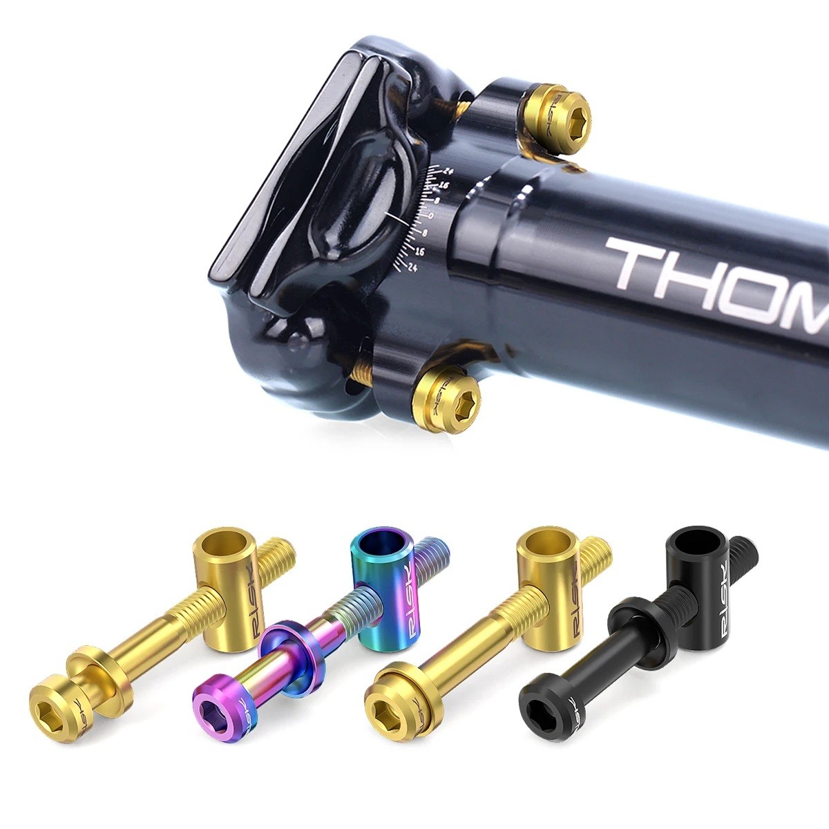 Odolné titanové šrouby pro uchycení sedla kola. Délka 40 mm zajistí pevné spojení a spolehlivou montáž při každodenním použití. Celý popis