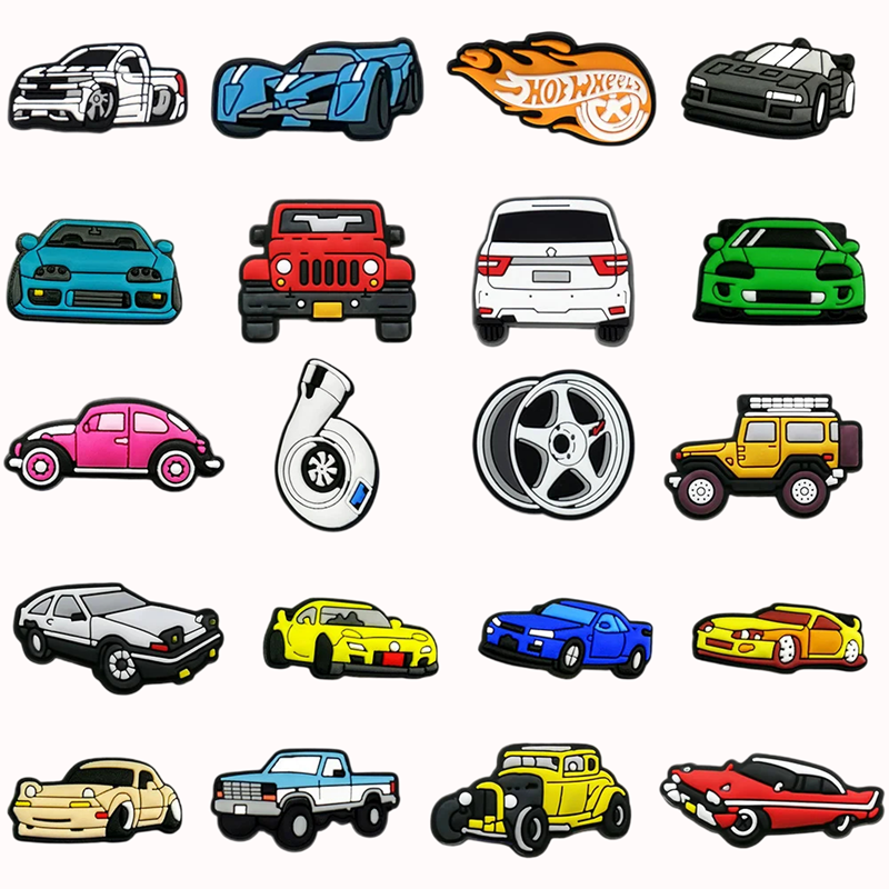 Úvodní strana Úvodní strana Boty Tkaničky do bot 20 ks Sada dekorací na crocsy motivy aut 3–4 cm PVC ozdoby do crocs obuvi doplňky na nazouváky s otvory