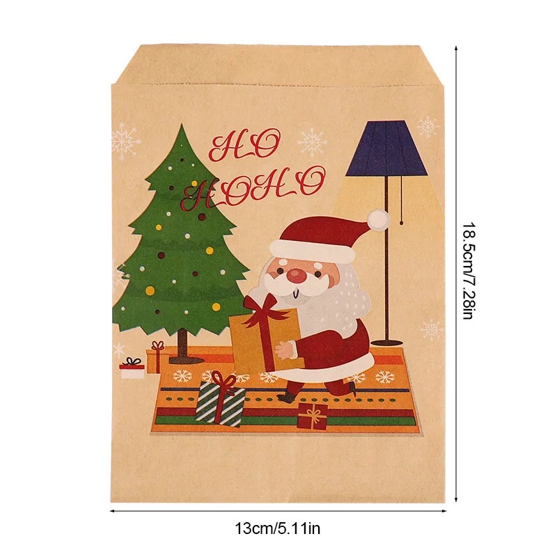 Tato sada 24 papírových vánočních dárkových tašek bez uch o rozměrech 18,5 x 13 cm je skvělou volbou pro elegantní a rychlé balení drobných dárků, sladkostí, kosmetiky nebo ručně vyráběných předmětů. Vyrobené z kvalitního pevného papíru, taštičky jsou odolné, ekologické a přitom lehké. Díky svému jednoduchému, ale stylovému designu s vánočními motivy dodají každému dárku kouzlo a slavnostní atmosféru.