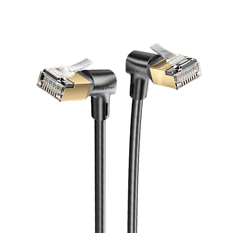 Ethernetový kabel CAT8 s 360° otočnými konektory je navržen pro flexibilní a praktické připojení v různých typech instalací. Díky konstrukci s pravým úhlem se hodí i do míst s omezeným prostorem, kde běžné konektory nemusí být vhodné. Kabel o délce 50 cm je ideální pro krátká propojení mezi zařízeními, například mezi routerem a notebookem nebo herní konzolí. Kombinace černé a zlaté barvy odpovídá provedení na obrázku.