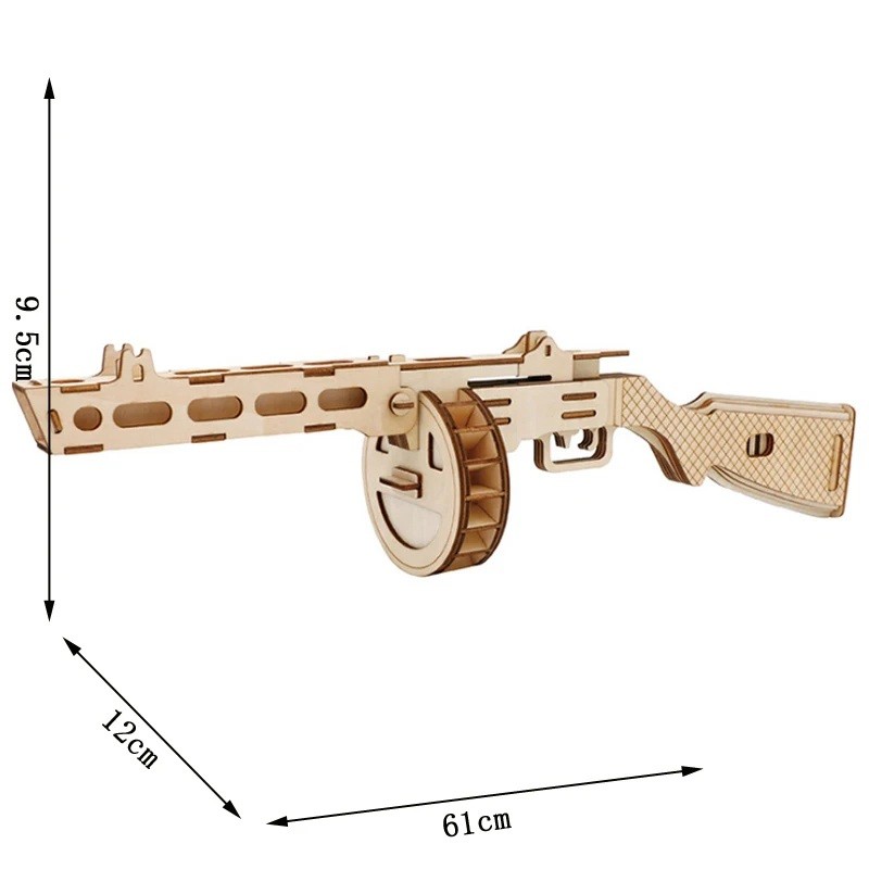 Tento 3D dřevěný model pistole představuje ideální kombinaci přesného řemeslného zpracování, estetiky a kreativity. Skládá se z 55 dílků precizně vyřezaných laserem, které po sestavení tvoří realistickou pistoli o rozměrech 61 × 12 × 9,5 cm. Díky laserovému řezání s vysokou přesností jednotlivé části perfektně zapadají, což zajišťuje snadnou a plynulou montáž. Model doprovází 3D návod krok za krokem, díky kterému zvládne stavbu i začátečník.