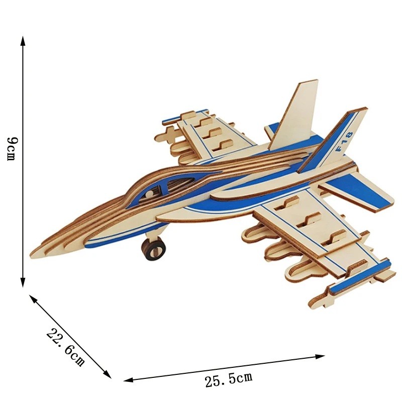 - Obsah balení: 1× sada 3D dřevěného puzzle stíhačka (47 dílků)