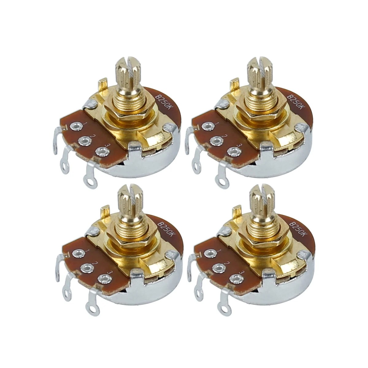4 ks potenciometry B250K s krátkou hřídelí pro elektrickou kytaru Ovládací knoflíky pro tón a hlasitost Přesné ladění a plynulý chod zvuku