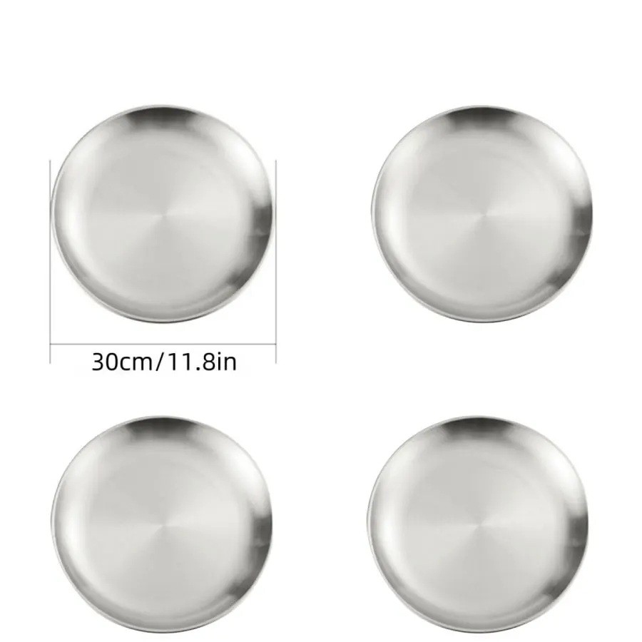Úvodní strana Úvodní strana Dům a domácí potřeby Do Kuchyně Stolování Talíře 4 ks talířů z nerezové oceli 30 cm Stříbrné kuchyňské talíře pro velké porce hlavních jídel slavnostní i každodenní stolování