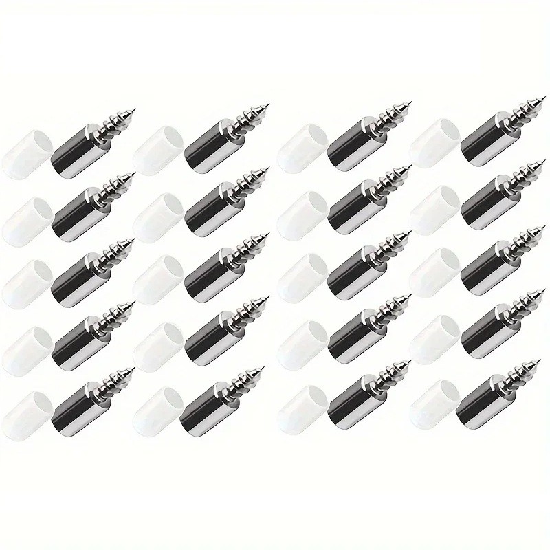 40 ks sada samořezných šroubů s gumovou krytkou 2,55 cm železo a silikon stříbrná bílá pro podpěru laminátu do skříňky