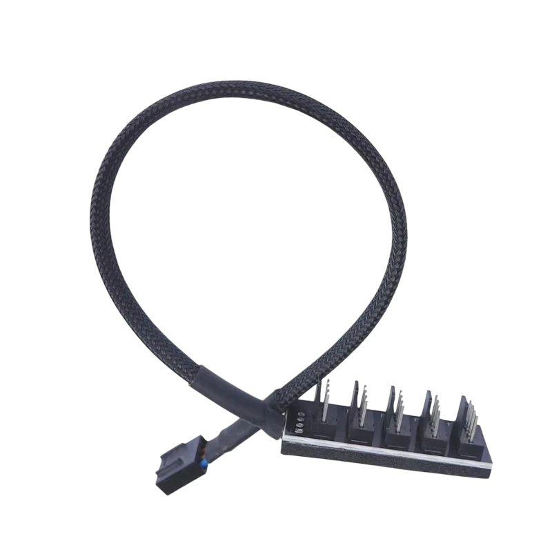 Tento rozbočovač ventilátorů je ideálním řešením pro každého, kdo potřebuje efektivně propojit více ventilátorů v počítačové skříni a udržet systém optimálně chlazený. Díky kvalitnímu 33 cm textilnímu kabelu a celkové délce 40,5 cm nabízí flexibilní instalaci a čisté vedení kabelů. Rozbočovač je vybaven jednou samičí koncovkou, jednou samčí koncovkou pro CPU ventilátor a čtyřmi samčími koncovkami pro systémové ventilátory. Tento produkt je kompatibilní s většinou moderních základních desek a představuje ideální volbu pro uživatele, kteří chtějí zlepšit cirkulaci vzduchu uvnitř počítače.