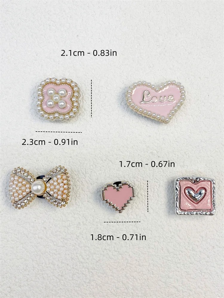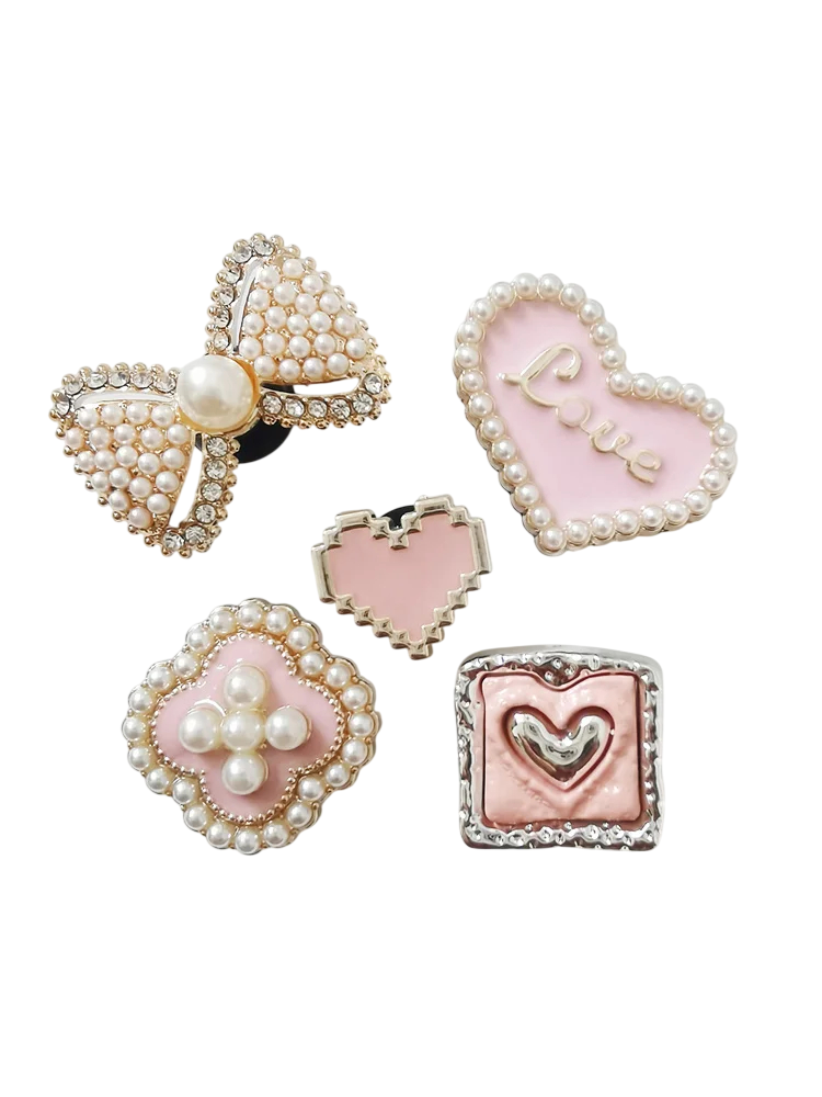 5 ks dekorace na crocsy dívčí motivy s imitací perliček ABS ozdoby na boty srdce mašle květina doplňky obuvi charms sada