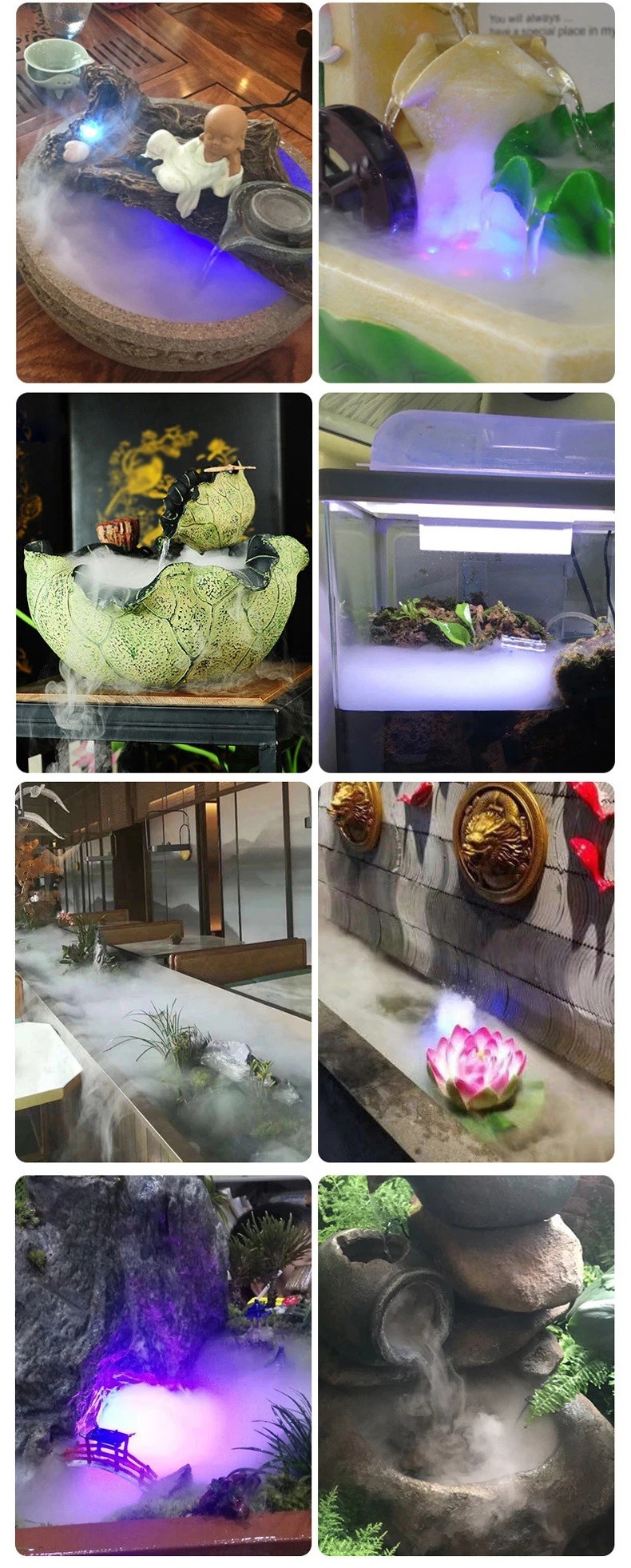 Tento atomizér je ideální pro různé aplikace, včetně akvárií, rybníků, terárií a dalších vodních dekorací. Vytváří nejen mlhu, ale i atmosférický efekt, který zlepšuje vzhled a vlhkost prostoru. Je snadno použitelný a má dlouhou životnost, což z něj činí praktický a efektní doplněk pro vaše prostředí.