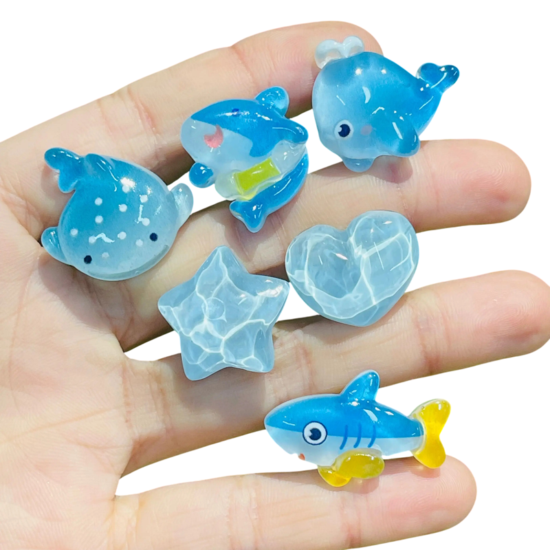 6 ks dekorace na crocsy 3D modrý mořský motiv ryby 2–3 cm pryskyřice ozdoby na boty vodní zvířata doplňky obuvi charms
