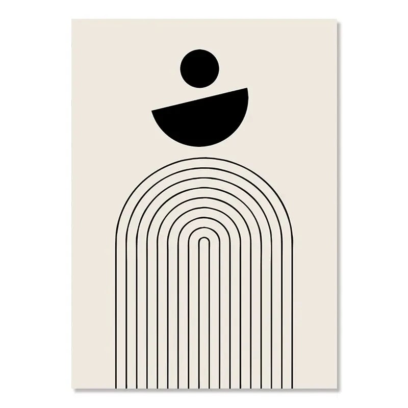Motiv je tvořen kombinací oblouků, linií a jednoduchých geometrických tvarů, které společně vytvářejí ucelený grafický celek. Rozměr 20 × 30 cm je praktický pro různé způsoby využití v interiéru. Plakát je vytištěn na plátno, což ovlivňuje jeho vzhled i strukturu. Jedná se o měkký plakát bez rámu, který umožňuje zvolit vlastní způsob uchycení nebo doplnění rámem. Černo-béžové barevné provedení podporuje univerzální kombinování s ostatními prvky interiéru. Motiv slouží jako dekorace do interiéru, vhodná do obývacího pokoje, ložnice nebo pracovny.