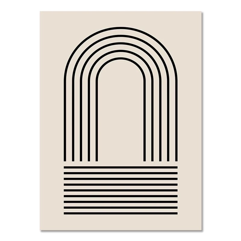 Abstraktní plakát na zeď s obloukem a liniemi 20 × 30 cm tisk na plátno černo-béžový geometrický minimalistický dekor bez rámu