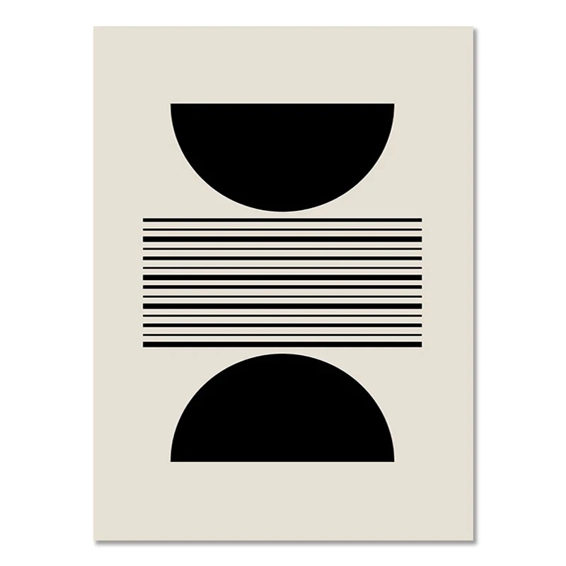 Abstraktní plakát na zeď s půlkruhy a liniemi 20 × 30 cm tisk na plátno černo-béžový geometrický minimalistický dekor bez rámu
