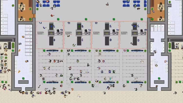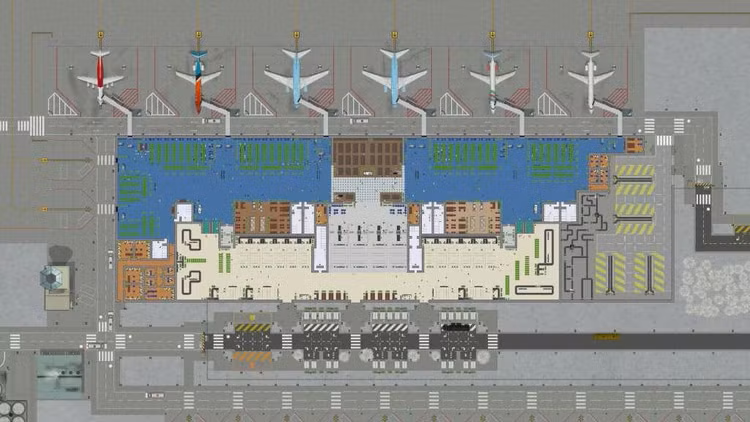 Letiště jsou komplexní megastavby se spoustou různých budov a zařízení. I když malé letiště nemusí potřebovat více než jednoduchou travnatou přistávací dráhu a terminál, s tím, jak své letiště rozrostete, budete muset rozšiřovat jeho zařízení od řídicích věží, prstů a odbavovacích ploch, pojezdových drah a servisních cest až po požáry, počasí, stravování a čerpacích stanic. Jak se vaše letiště rozrůstá, váš terminál se rozrůstá, budete se muset ujistit, že je vybaveno nezbytným vybavením, které cestující očekávají. Stavba terminálu v Airport CEO je 100% zakázková: Vy rozhodujete o jeho tvaru, uspořádání, jeho součástech, jako jsou podlahy, stěny a dveře. Zavazadla musí být zpracována a přepravena na stejný let jako jejich vlastník a pokud jde o vyhnutí se úzkým místům a návrh konečného letištního terminálu, je vše na vás.