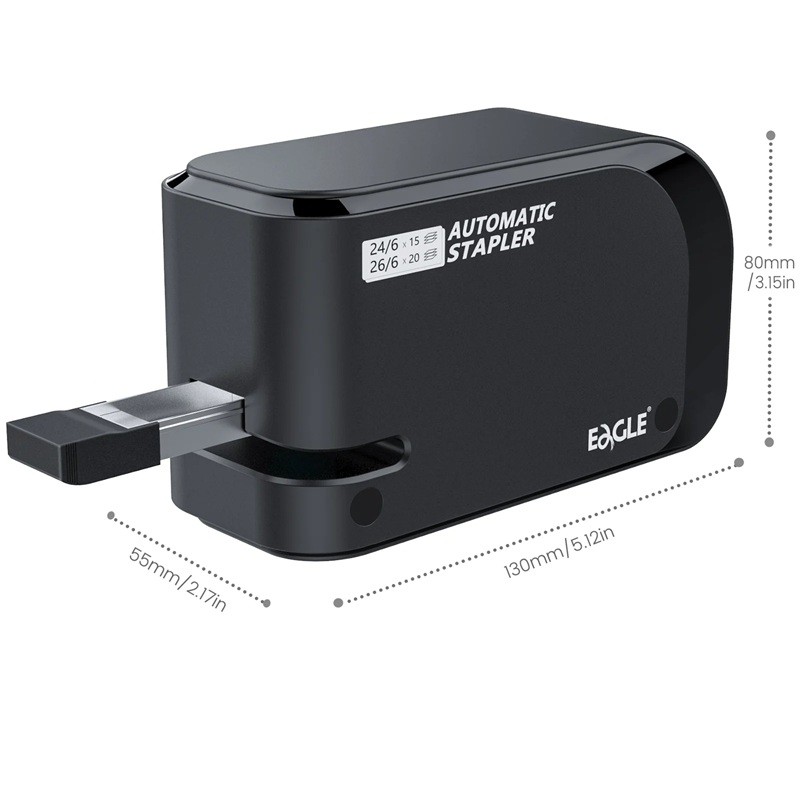Tato automatická elektrická sešívačka je vhodná pro každodenní použití v kanceláři, škole i domácnosti. Umožňuje rychlé spojování dokumentů bez nutnosti ručního stlačení klasické sešívačky. Díky kompaktním rozměrům 130 x 80 x 55 mm nezabere mnoho místa na pracovním stole. Součástí balení je 2000 sponkami zdarma, takže je připravena k okamžitému použití. Elegantní černé provedení se hodí do moderního pracovního prostředí.