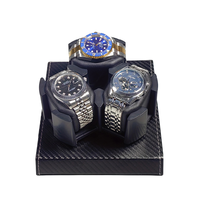 Praktický box pro tři hodinky s tichým chodem a nastavitelnými polštářky. PU kůže, USB napájení a kompaktní rozměry na stůl. Celý popis