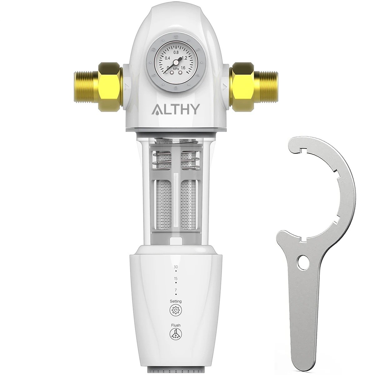 Zařízení je vybaveno funkcí automatického proplachování, která umožňuje pravidelné čištění bez nutnosti zásahu. Interval lze nastavit na 7, 15 nebo 30 dní. V případě potřeby lze spustit i okamžité propláchnutí tlačítkem. Tento systém pomáhá zabránit zanesení filtru a udržuje jeho průchodnost.
