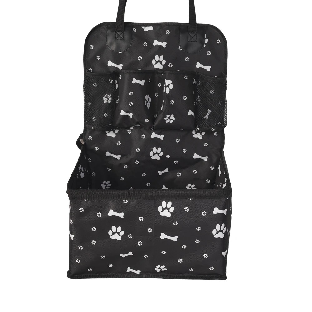 Autosedačka pro psy s úložnými kapsami, ideální pro přední i zadní sedadla auta, snadná instalace a údržba