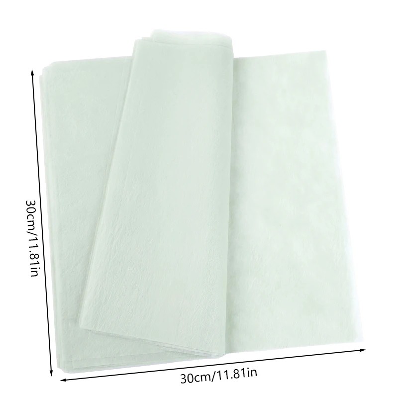 Každý arch má rozměr 30 × 30 cm, což je ideální velikost pro menší až střední kytice nebo kreativní balení. V balení se nachází 38 ks, takže sada poskytuje dostatek materiálu pro více použití. Materiál je tvořen poloprůsvitným papírem, který se snadno tvaruje a dobře drží požadovaný tvar.