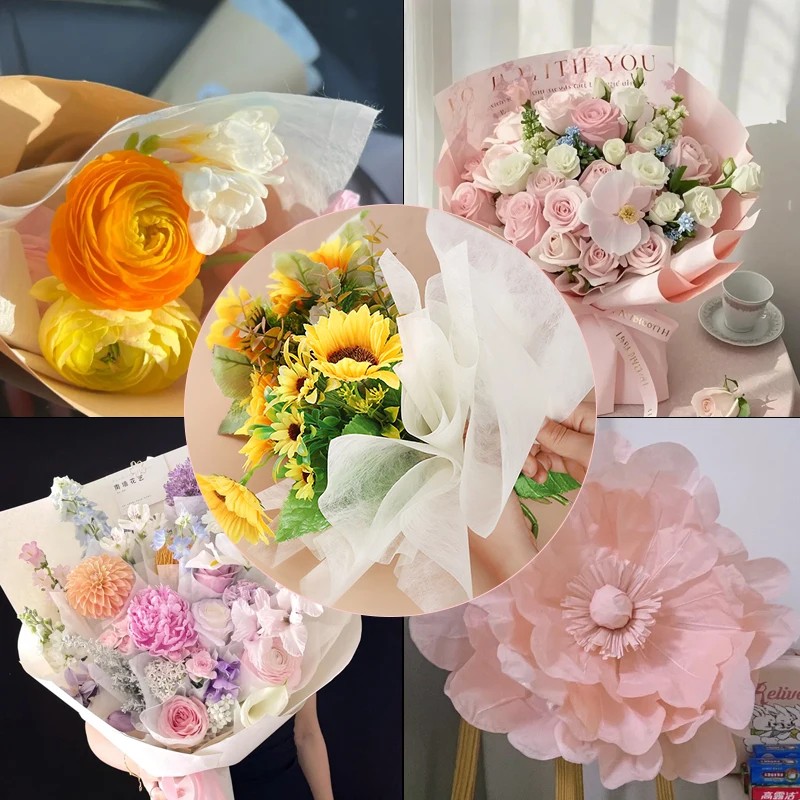 Balicí papír na květiny sada 38 ks 30x30 cm poloprůsvitný papír světlé barvy floristický obal na dárky a kytice