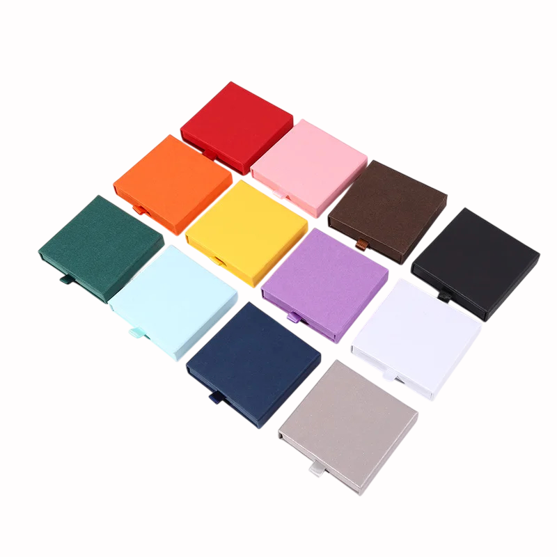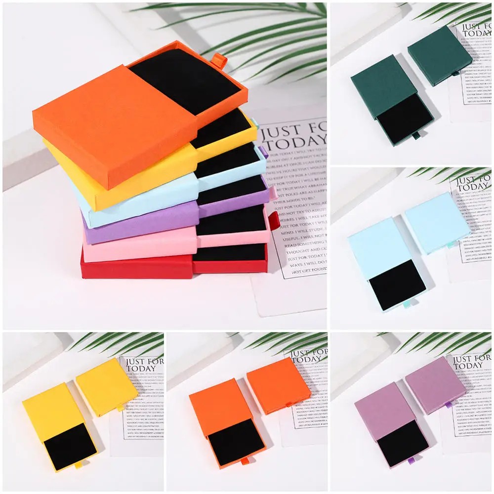 Barevné dárkové krabičky se zásuvkou 10×10×2 cm, kartonové šperkovnice s výsuvným šuplíkem a pěnovou výplní, na šperky