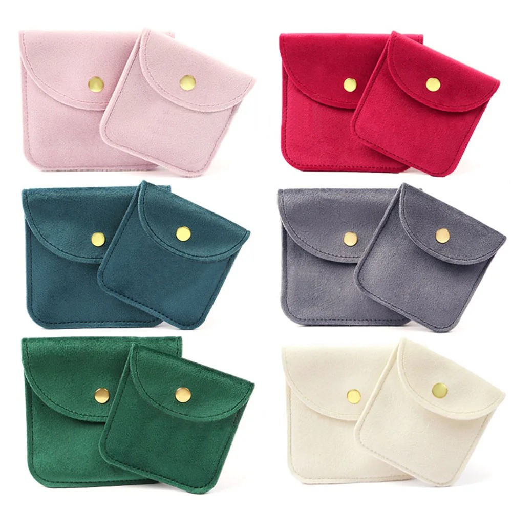 Barevné sametové pouzdro na šperky 8×8 cm se zapínáním na druk, měkké ochranné pouzdro na šperky a drobnosti