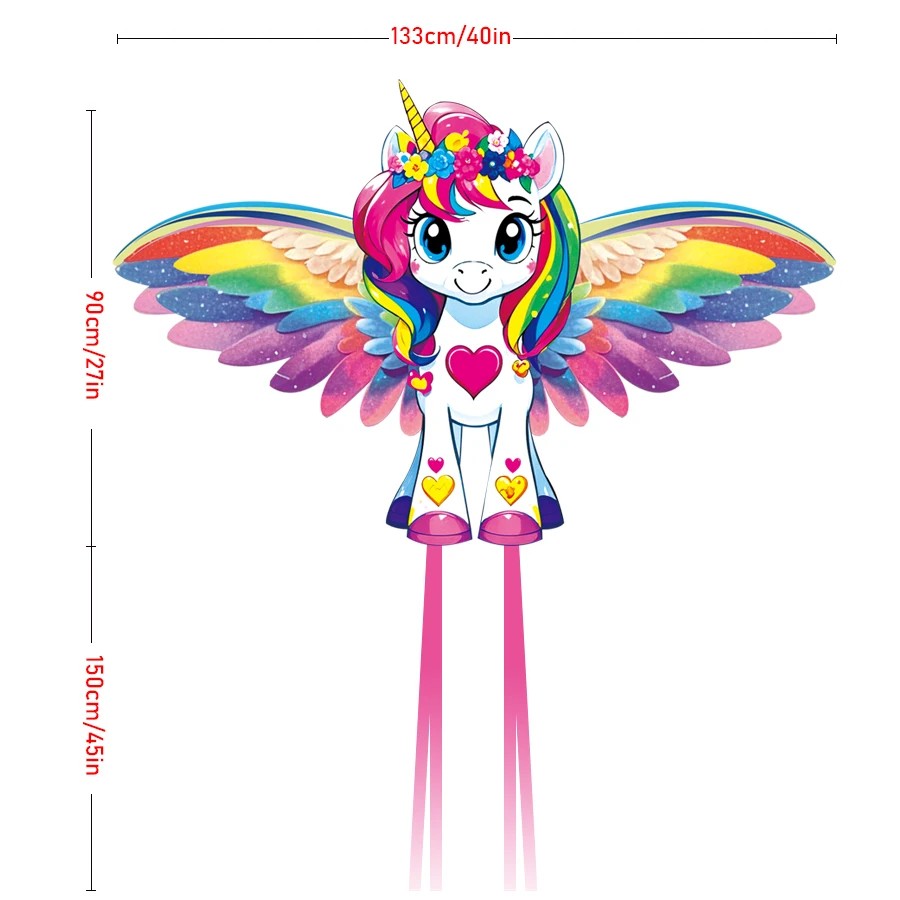 Barevný létající drak ve tvaru koníka s duhovými křídly Lehký polyesterový drak pro děti i dospělé Zábava na větrné dny venku