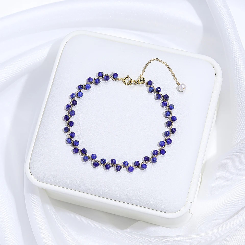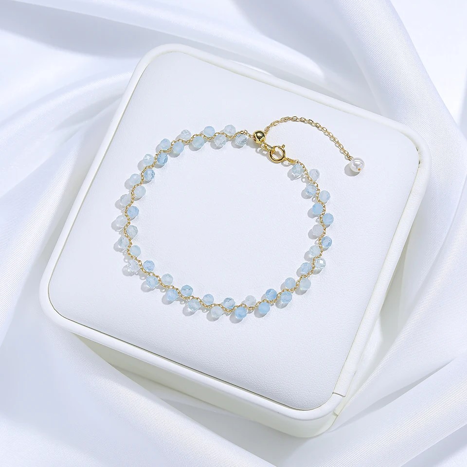 Řetízek a kovové části mají zlatou barvu, která se snadno kombinuje s dalšími doplňky. Lehká konstrukce zajišťuje pohodlí při nošení během dne. Náramek lze nosit samostatně nebo v kombinaci s dalšími šperky.