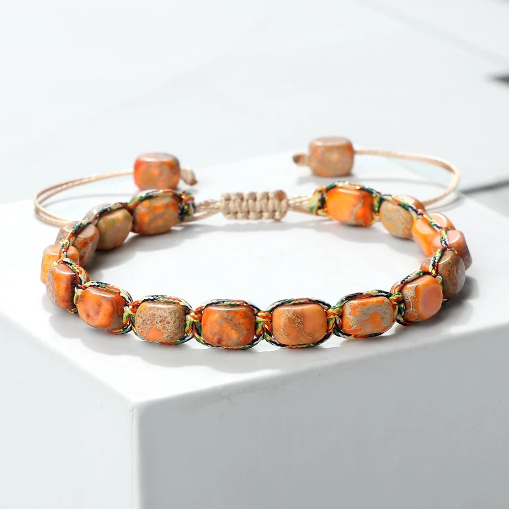 Nastavitelný náramek z kamínků na voskované šňůrce s ručně vázaným uzlem. Pohodlné nošení a snadné přizpůsobení velikosti. Celý popis