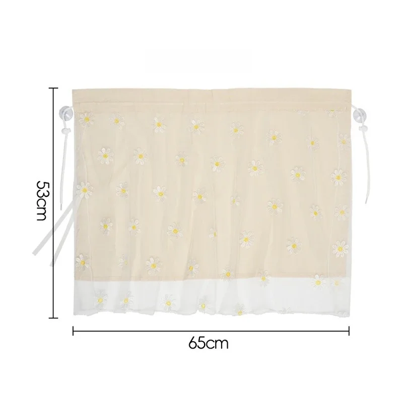 Bavlněná vyšívaná záclona do auta 65 x 53 cm Boční clona s přísavkami Dvouvrstvá záclonka s kopretinami Béžová dekorace