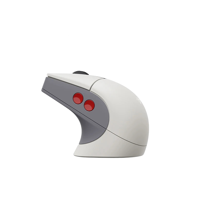 Design myši vychází z retro stylu a kombinuje bílo šedé provedení s červenými tlačítky, které jsou výrazným vizuálním prvkem. Tvar myši je přizpůsoben pro jednoduché ovládání a přirozené držení v ruce. Kompaktní rozměry 11,5 × 5,8 × 4 cm zajišťují, že se myš snadno vejde do tašky nebo na menší pracovní plochu.