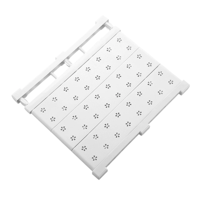 • Nastavitelná délka 38–60 cm, šířka 42 cm – ideální do širokých regálů a skříní
