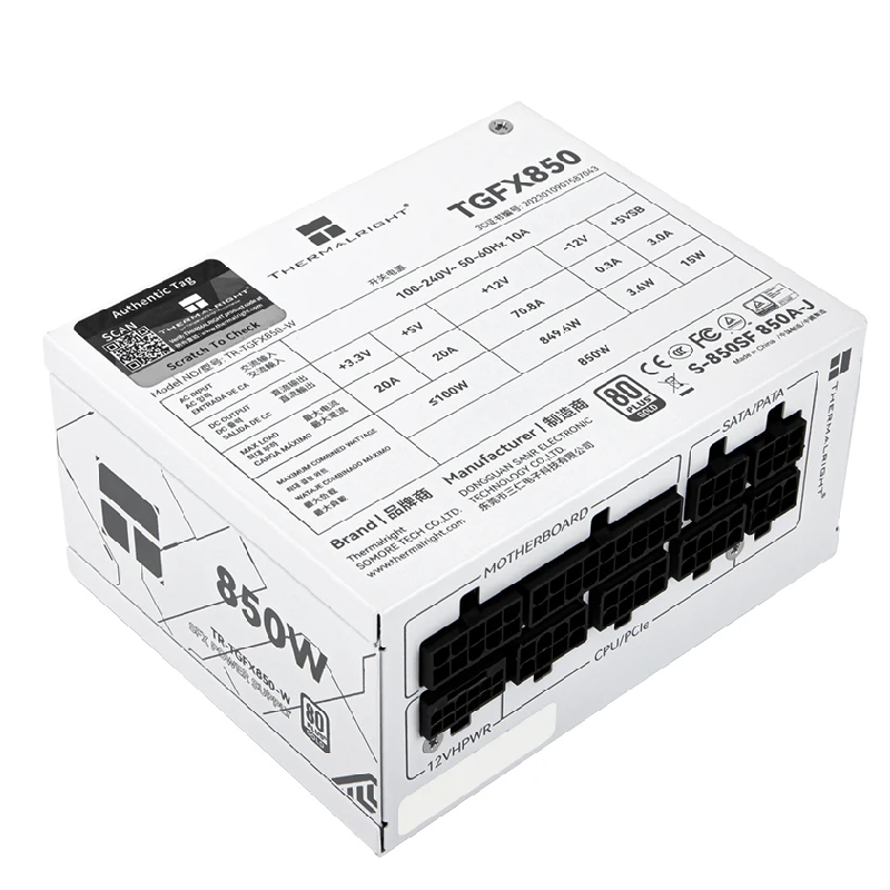 Výkonný bílý napájecí zdroj 850W pro moderní PC, podpora ATX 3.0 a PCI-e 5.0, vysoká stabilita, kompaktní rozměry a spolehlivý provoz. Celý popis
