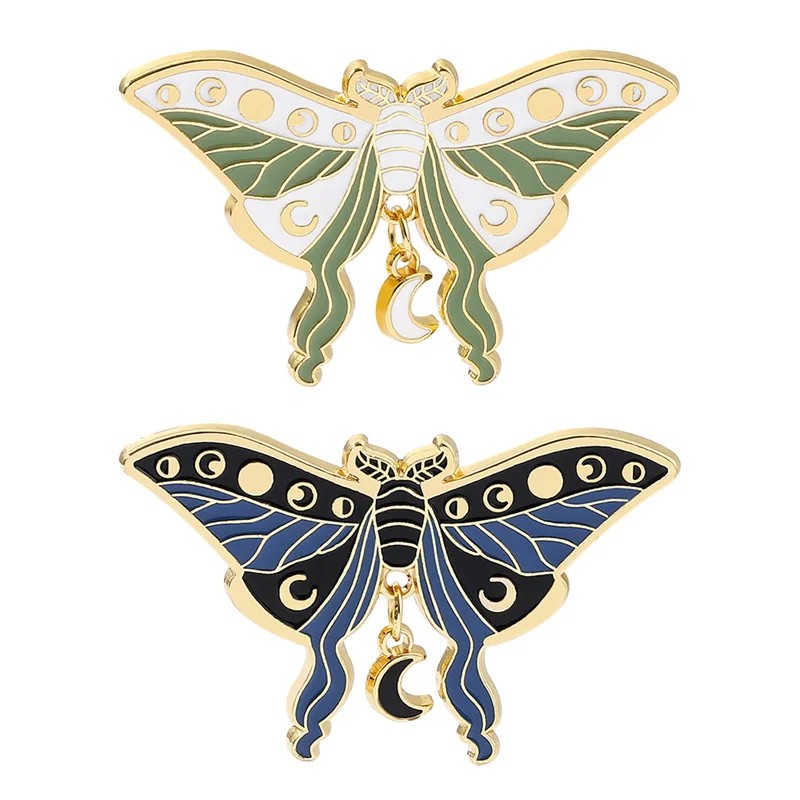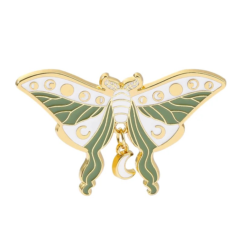 Brož noční motýl s přívěskem měsíc 31 × 50 mm smaltovaný pin hmyzí odznak klopový špendlík doplněk na batoh klopu oblečení