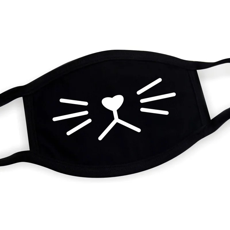 Černá bavlněná zimní teplá poloobličejová maska Unisex zahušťovací ústní maska s kresleným vzorem kočky Ochrana proti chladu a větru