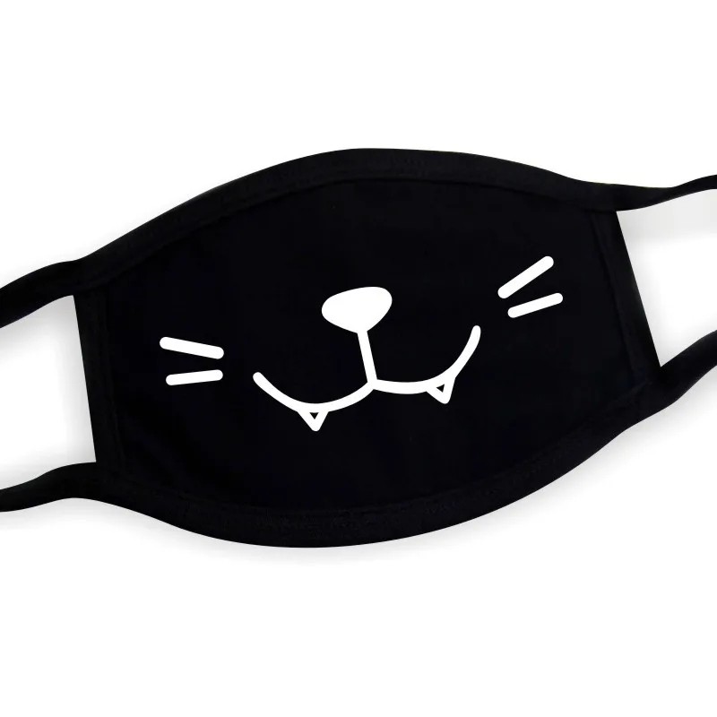 Černá bavlněná zimní teplá poloobličejová maska Unisex zahušťovací ústní maska s kresleným vzorem kočky Ochrana proti chladu větru prachu