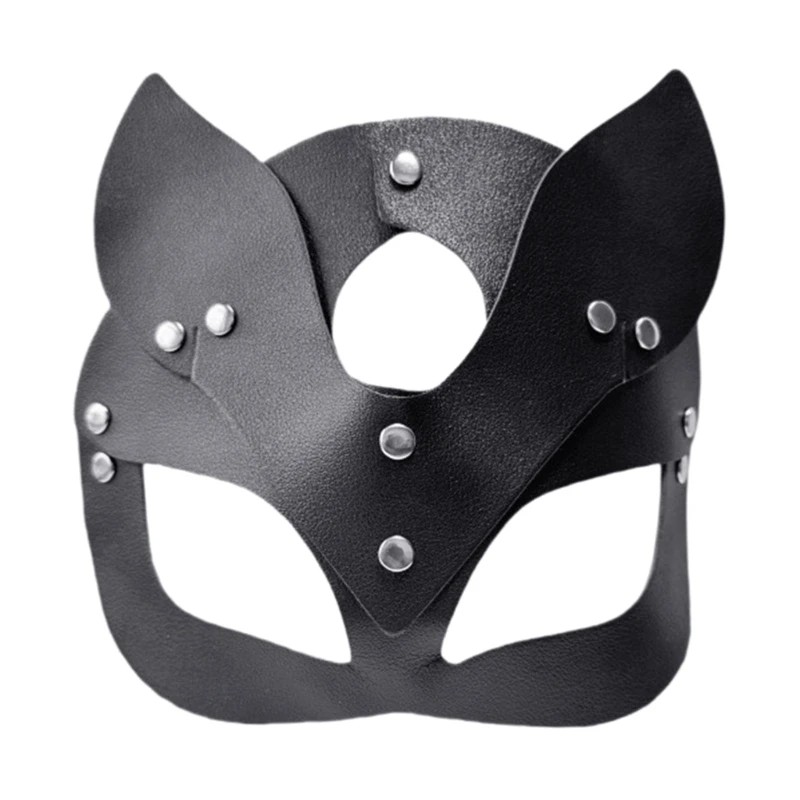 Černá mechanická poloviční maska Catwoman na cosplay a karneval Maškarní halloweenská maska pro dospělé Strašidelná rekvizita