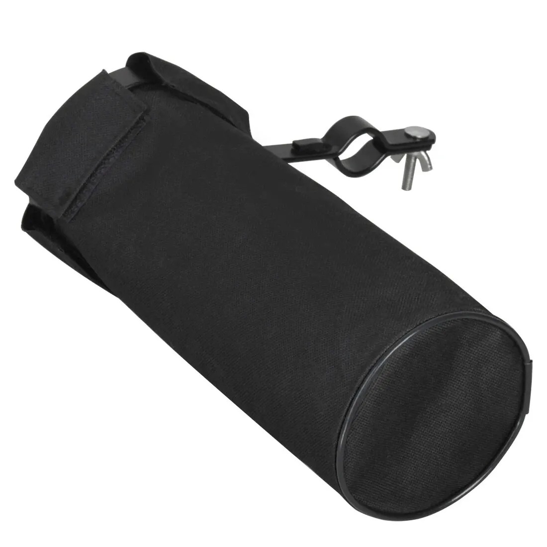 Černé válcové pouzdro na paličky 25,5 x 10 x 22,5 cm Voděodolný držák na paličky s kovovou sponou Robustní oxfordské pouzdro na bicí nástroje