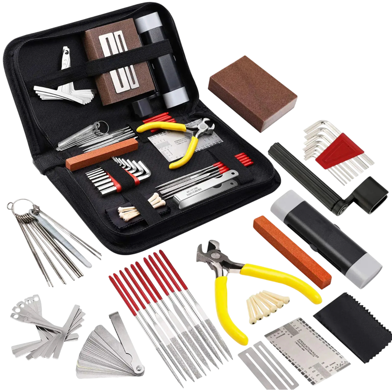 Díky praktickému uspořádání v přenosné tašce na zip máte všechny pomůcky přehledně uložené a snadno přenosné. Tato sada je ideální nejen pro profesionální muzikanty a opraváře, ale i pro začínající hráče, kteří chtějí provádět základní servisní úkony sami.
